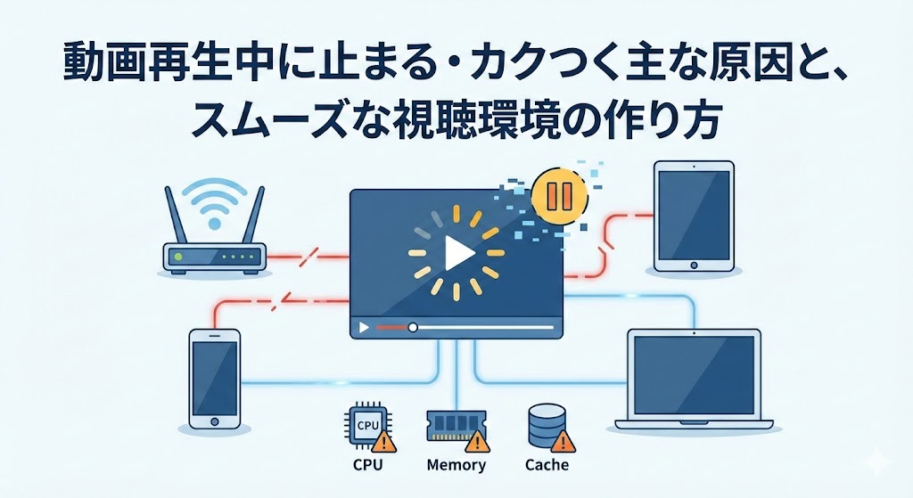 動画再生のトラブルは、主に**「通信帯域の不足」「デバイスの処理能力不足」「データの一時的な過負荷」**の3点に集約されます。